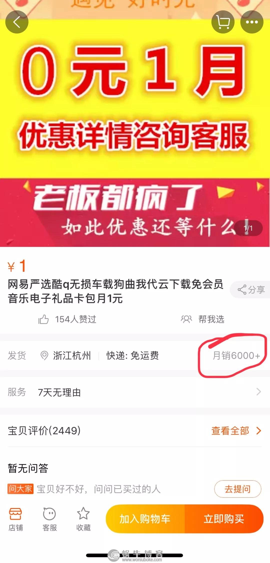 戳进去一看,月销量竟然高达6000+。这时候你应该好奇了,这些店的网易云音乐会员卖成这价格,还赚个啥钱?这不是跟《西红柿首富》的王多鱼一样在给大家送钱吗?