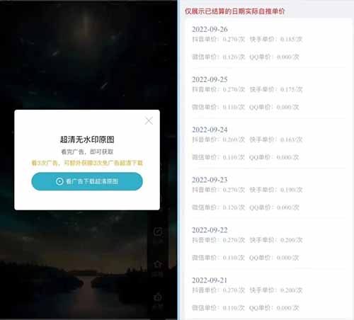 然后用户会根据你的引导,直接去搜索小程序输入你的专属口令,粉丝想要拿原图,必须要观看一段小广告才可以下载原图,看完之后。