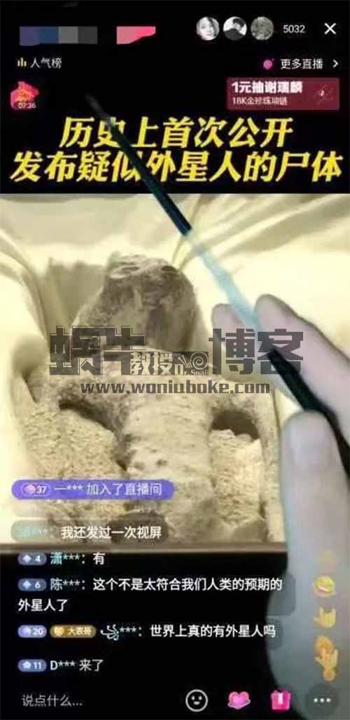 刷着刷着,就刷到一个外星人的直播间,因为最近新闻上有报道说墨西哥有出土外星人的遗骸,抱着好奇的心态点了进去。