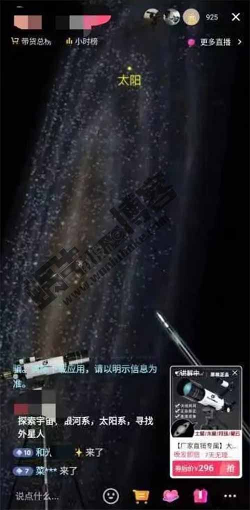 于是我又盯了这个直播间好一会儿,接着这个主播又把话题转移到什么太阳系银河系各种瞎吹,接着正题就来了。