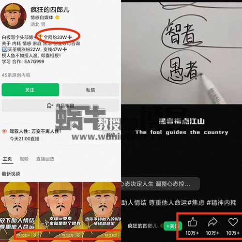 这个账号,发布了四十多个作品,全网揽粉33W+。