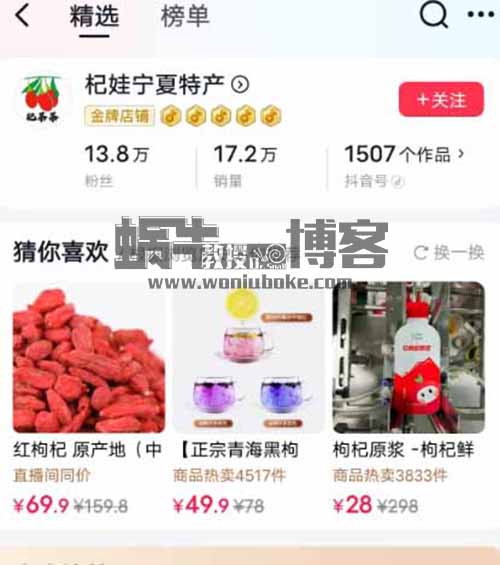 我随手给朋友,找了几个类似的抖音号给它参考,其中有一个卖枸杞的还是不错的。