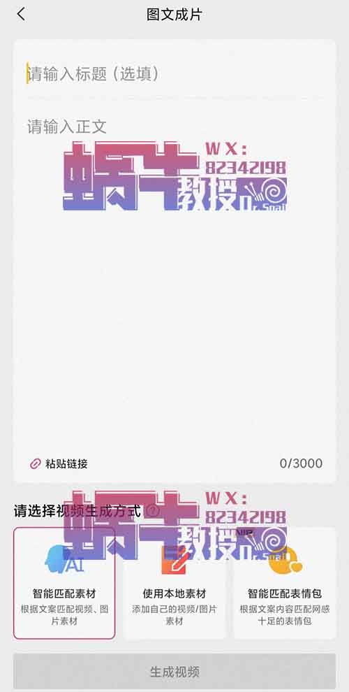 打开剪映,选择“图文成片”,粘贴上修改好的文案,选择“智能匹配素材”,点下面的“生成视频”。
