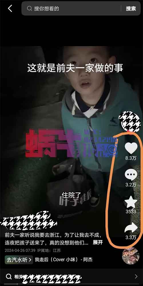 视频内容也就是围绕离婚,前夫,孩子,抚养权,看孩子,对方不让他看等等话题来讲述自己的故事,