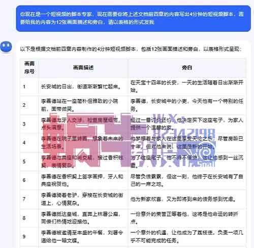 这样,我们就不用自己去看小说,并且自己写解说文案了。直接把小说文稿丢给KIMI,让它速读并给出分镜脚本文案。