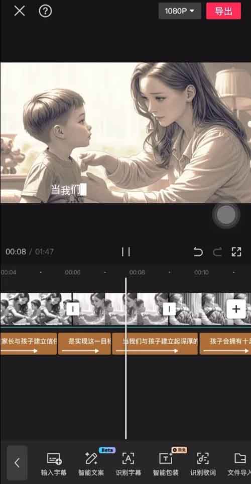 最后把配音,还有刚才得到的图片同步导入到剪辑工具里,中间可以添加一些转场,调节图片的时长,添加一个BGM,这个视频就制作完成了。