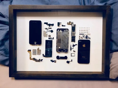拆分了部分手机零件,然后在进行布置装裱,简直是把旧手机变成了艺术品!
