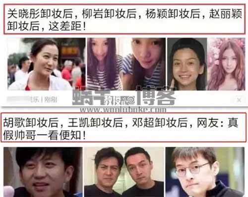 比如前几天传阅转载比较多的一篇内容,关于明星素颜照片的:
