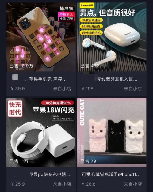 而且他们在商店里面也放上了和手机有关的配件,比如手机壳,耳机、充电器等,销量都还不错。