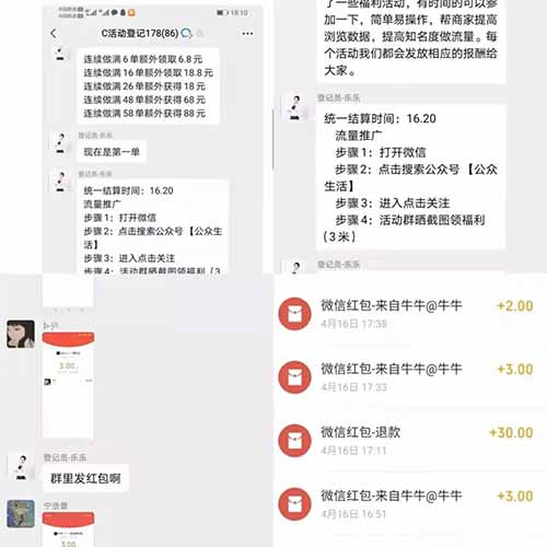 项目原理就是添加短信上的微信为好友,然后他拉你进群,刚开始会在群里发布一些简单的任务,例如关注一个公众号3-5元,这对于很多宝妈、学生来说这么大的红包还是很诱人了。