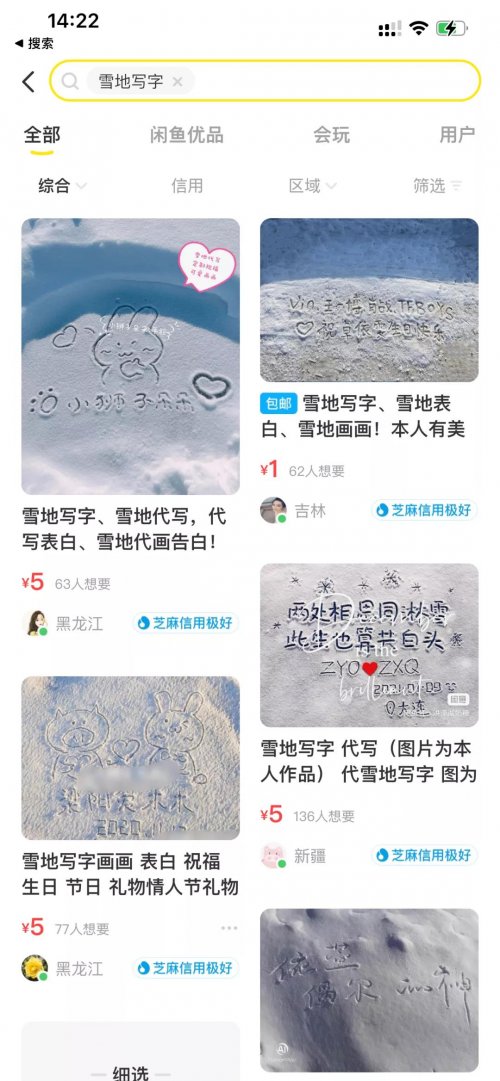 昨天在群里面和伙伴们聊天的时候,有个朋友说他们那里下大雪了,在随后的交谈中他在群里问有没有人需要雪地写字的,发个红包写一个名字。我当时还挺好奇的,然后我去朋友圈和群里看了一下居然真的也有做这个小项目的。