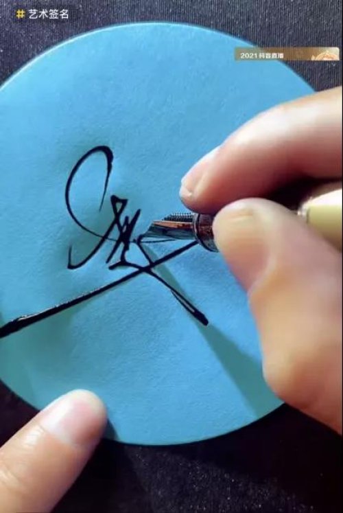 这个直播间是讲啥的呢?就是帮别人在线签名,然后让直播间的人截图,可以作为微信头像,不得不说他的签名确实很好看,很有艺术感,直播间的人疯狂刷屏自己的名字,都想要个签名,可以看出这个需求之大,这就把直播间的人气推起来了,他们的主要变现方式就是收徒。