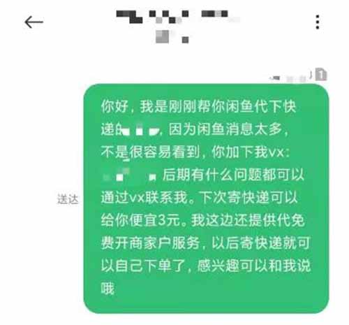 我通过短信,图片留VX等方式以后期售后问题把他们加到我的私域流量上,基本添加率能做到百分之80,虽然每天忙活要死,快递代下属实没赚大多钱,但是这1000私域流量给我带来了破W的收入。