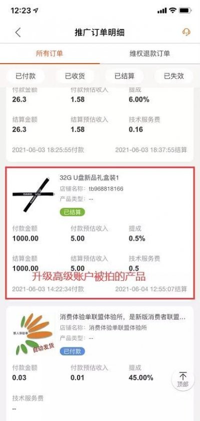 所以升级高级账户权限的服务,面向的客户往往是一些淘宝消费者,这些人是知道一些产品是可以从淘宝联盟自购拿佣金的,这部分群体相当庞大,他们没有能力每个月能按要求完成这些指标,所以就会花一些小钱去升级高级权限。