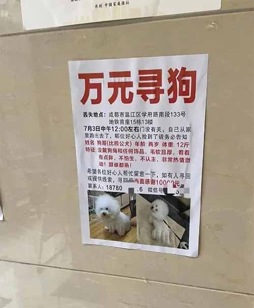 去年还有一则真实的报道,说北京丰台区一业主丢失宠物狗,发出重赏告示,报酬为一套房子,市值近五百万。