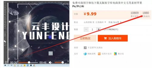 随便打开一个看了一下,一个PS字体包30天内累计交易成功1880,单价也不高才9.9。