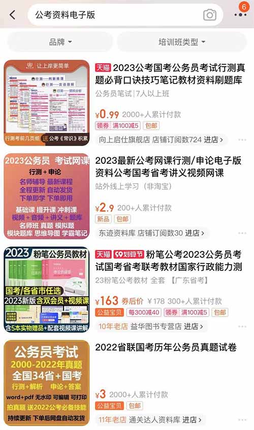 我们要卖公务员考试资料,自然就得有产品,这个简单,直接淘宝上或者拼多多上一搜一大把,最多9.9就搞定。