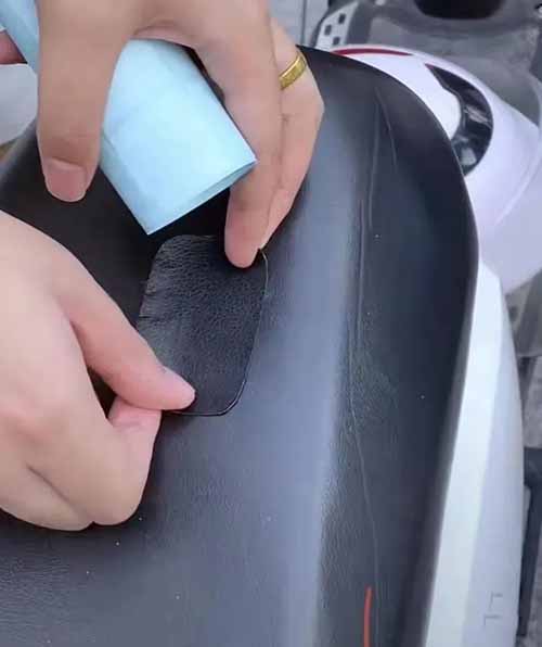 脸皮厚的肯定不会在乎,脸皮薄的慢慢习惯一下就可以了,我们贴多了就不会不好意思了,其实我们这做的也是一份工作嘛。假如说我们修补好了的话,也可以顺手把座椅擦干净一点,服务一定要做到位,到最后就是留下我们的二维码。