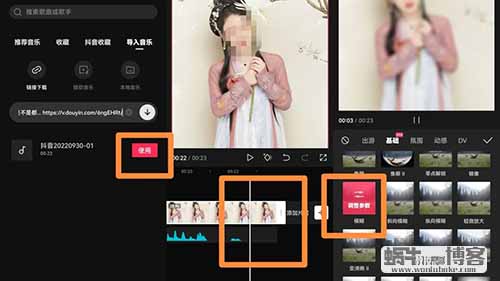 导入之后在下边点击添加音频,这个时候剪映会提示你导入音乐,在链接下载把刚才复制的链接粘贴进去,然后点击使用,找到的视频上的音频就被提取出来了,直接放到剪映里边。