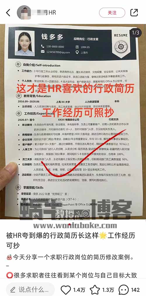 有人觉得,像这种简历某宝一搜一大把,别人干嘛要在她那里买呢?有这种想法的人,就是存在认知差。
