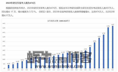 近几年,考研报考人数逐年上涨。从2000年开始至2023年,报考人数一直呈现出稳步增长的态势,去年更是有高达457万的考生参与这一大考。