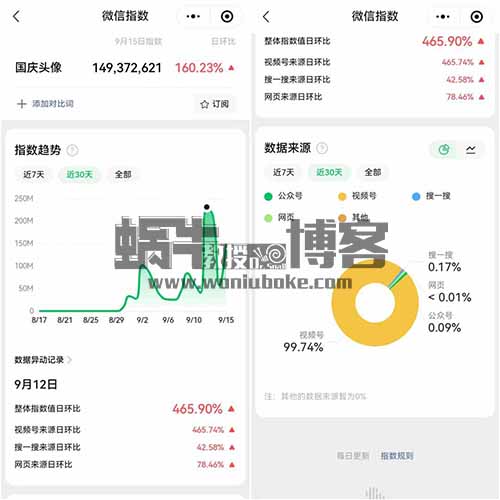 最近应该有不少小伙伴都刷关于国庆节、五星红旗的内容,每到国庆,举国欢庆,一片祥和,微信指数国庆头像目前已经破亿的关注度,全国网民都在关注的事,属于现象级热点!