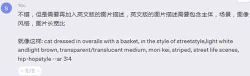 这个参考是我之前为图给madejohnny用它的describe指令生成的,再来看这次它生成的内容,已经是我们想要的了,补充了英文描述,并且也给了图片的风格以及长宽比。