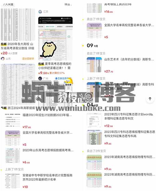 货源就是虚拟资料,一份可以无限卖,几乎零成本,现在时间和精力都很宝贵的情况下,很多学生和家长都想便捷的有一份可参考资料,但是又懒得去自己整理收集收集,而我们就相当于帮他们去整理这些资料,收个辛苦费卖给他们。