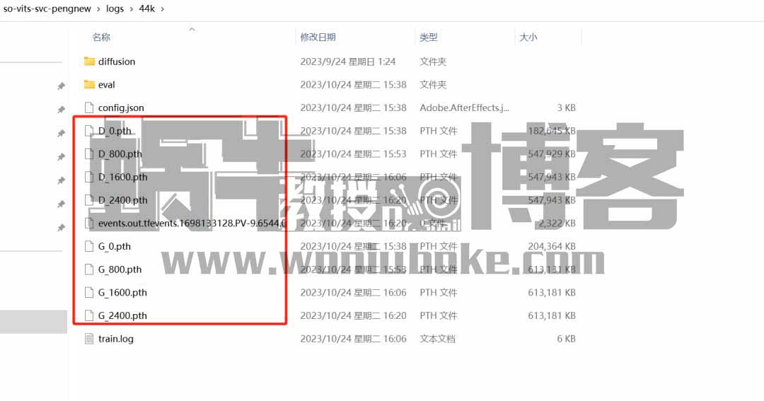 9、训练出来的模型放在.\so-vis-svc\logs\44K 文件夹,