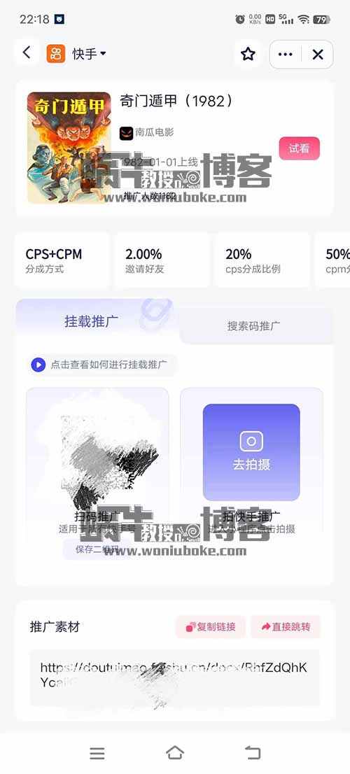 如果是自己手机的号发布,可以点击右边的拍快手推广,别的手机可以扫左边码推广,快手和抖音区分开来,里面也有视频教程。