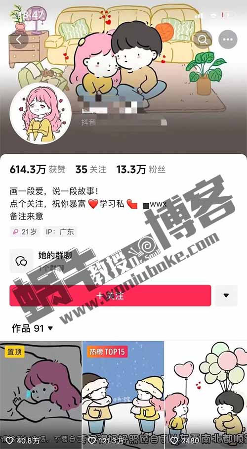 91条作品,粉丝数13.3W+,主页留联系方式,说明教学是变现方式之一,甚至说授课可能是她唯一变现方式。