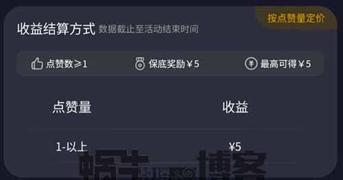 发布完成以后,只要有一个赞,就有最少5块的保底收益