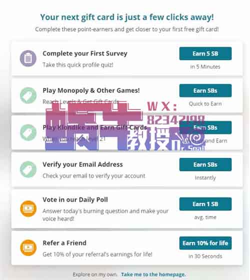 Swagbucks,这个听起来高端大气上档次的名字,实际上就是一个任务平台。平台的任务也比较简单,只需动动手指,就能完成一些简单点任务,就能轻松赚取积分,并将其兑换成礼品卡,然后兑换出米。