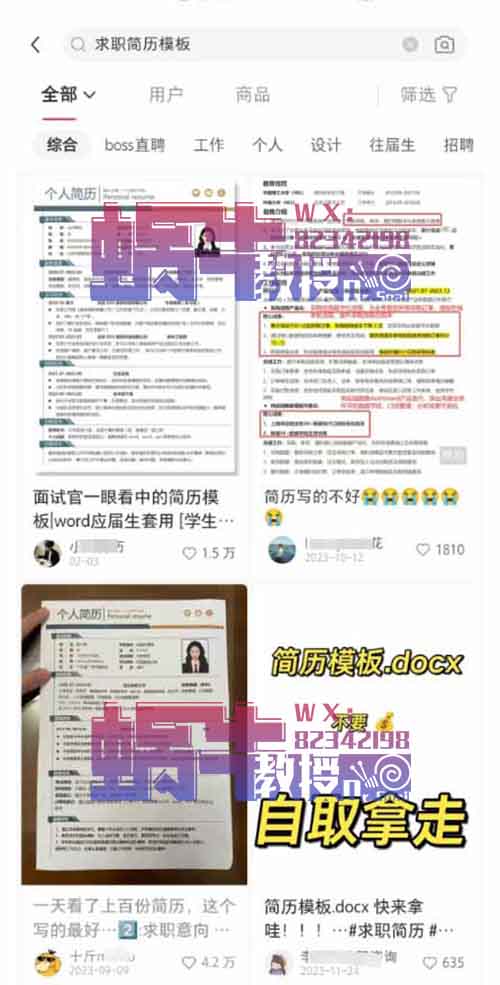 基本逻辑跟我们以往做过的各种信息差项目没有什么差别,只是我们推荐的东西换成了【求职简历模板】,