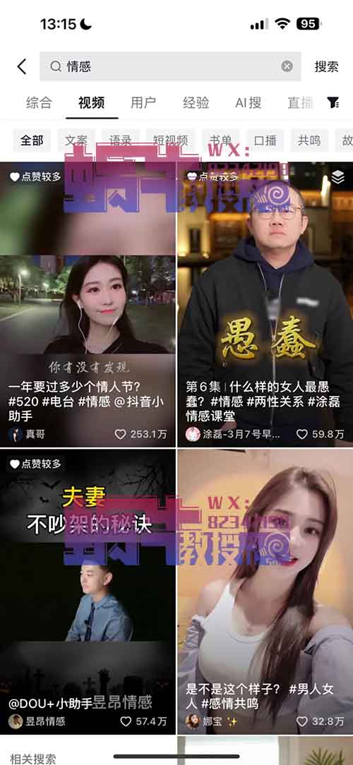 聊到情感类赛道,算是抖音内容备受关注的一个细分领域,情感是一个大众化的刚需话题。