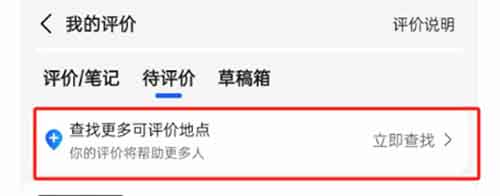 2.如果没有出现这个页面内容,就在页面的顶部,找到“待评价”查找更多可以评价的地点。