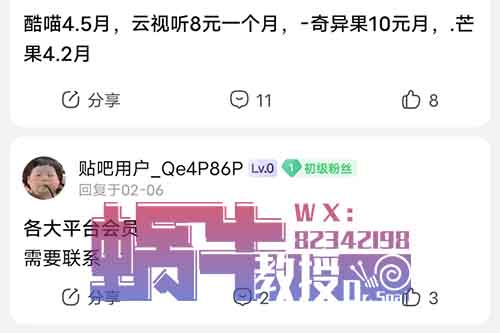 1,百度贴吧,搜索相关的关键词《电影,电视,会员,低价会员》