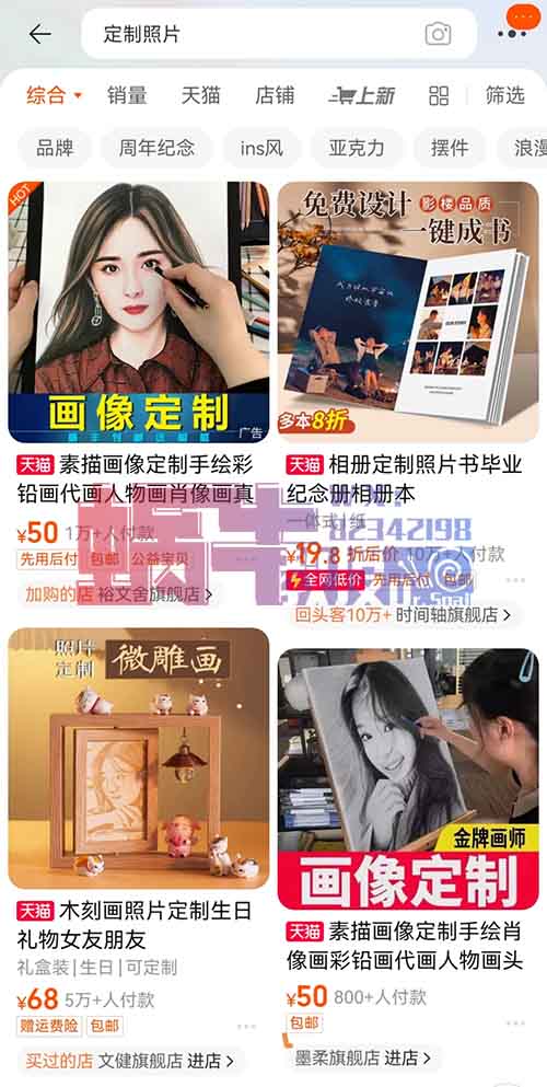 就比如这个定制照片,照片手绘、照片书这些送礼我都购买过,而且他们的销量很高,一单几十块至几百都有。